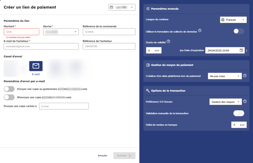- Vous précisez le mode de validation du paiement (validation manuelle).